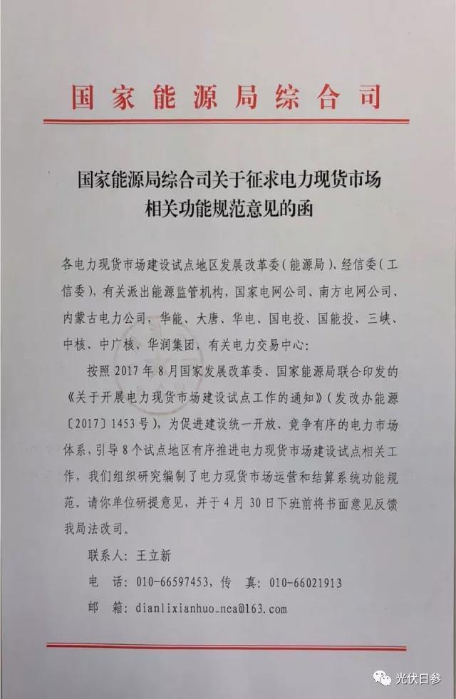 中國儲能網(wǎng)訊:2018年4月17日,國家能源局綜合司下發(fā)《關(guān)于征求電力現(xiàn)貨市場相關(guān)功能規(guī)范意見的函》,這也許標(biāo)志著,2018年底前,在8個試點(diǎn)地區(qū),電力現(xiàn)貨市場即將開放!