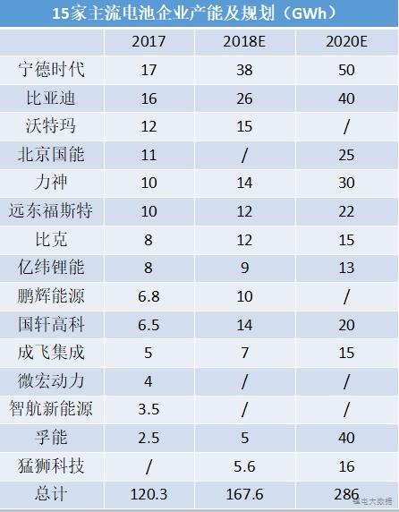 到2020年,寧德時(shí)代、比亞迪、國(guó)軒高科、億緯鋰能、比克電池、成飛集成、北京國(guó)能、孚能、遠(yuǎn)東福斯特、猛獅科技、力神等11家企業(yè)的產(chǎn)能預(yù)計(jì)將達(dá)到286Gwh,一般一輛新能源汽車(chē)配55KWh電池,這些產(chǎn)能相當(dāng)于可以裝配520萬(wàn)輛車(chē)。而根據(jù)國(guó)家“十三五”發(fā)展規(guī)劃,到2020年新能源汽車(chē)要實(shí)現(xiàn)當(dāng)年產(chǎn)銷(xiāo)200萬(wàn)輛,產(chǎn)能已嚴(yán)重過(guò)剩。