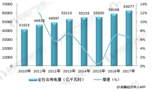 中國(guó)儲(chǔ)能網(wǎng)訊:全社會(huì)用電量持續(xù)增長(zhǎng) 2017年達(dá)63077億千瓦時(shí)