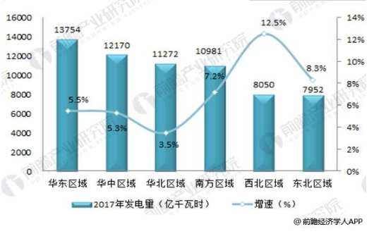 2017年華東區(qū)域13754億千瓦時(shí) 位居全國(guó)第一