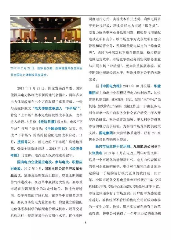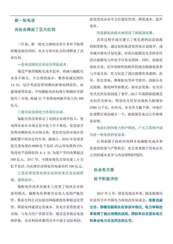 中國儲能網(wǎng)訊:三年來,新一輪電力體制改革堅持新發(fā)展理念,堅持社會主義市場經(jīng)濟方向,按照管住中間、放開兩頭的要求,以大力推動市場化交易為中心,有序放開競爭性業(yè)務和競爭性環(huán)節(jié)電價,加強政府對自然壟斷環(huán)節(jié)的監(jiān)管,優(yōu)化電力資源配置,還原電力商品屬性,拓寬社會投資渠道,改善供電服務質(zhì)量,形成主要由市場決定電價的機制。當前,中國特色社會主義進入新時代,電力體制改革也要有新氣象、新作為。站在新的歷史起點,對改革進展、改革成效和存在問題進行階段性總結(jié),并對下一步推進電力改革提出政策建議,很有必要。