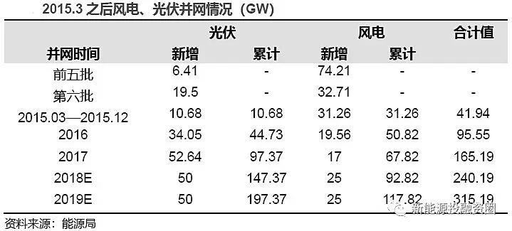 根據(jù)法規(guī)條例,可再生能源發(fā)電站以并網(wǎng)時(shí)間為根據(jù),通過排隊(duì)納入可再生能源補(bǔ)貼目錄,從而獲得國家下發(fā)的可再生能源發(fā)電補(bǔ)貼。目前該補(bǔ)貼目錄發(fā)至第六批(2016 年9 月發(fā)布),涵蓋至2015 年2 月底前并網(wǎng)的電站,此后便停止更新,也就意味著截至17 年底,有165.19GW 項(xiàng)目無法收到補(bǔ)貼,其中風(fēng)電67.82GW,97.37GW。
