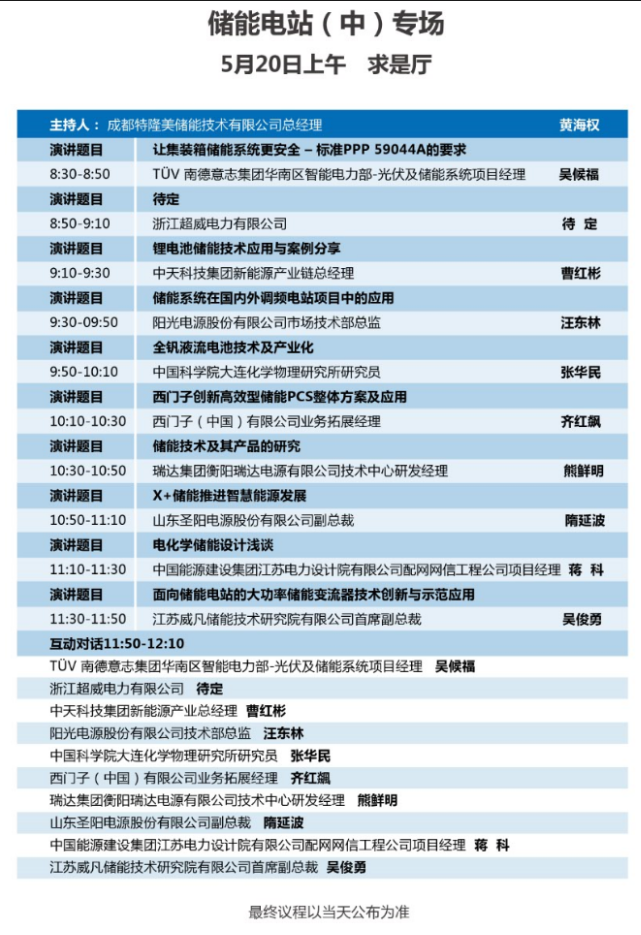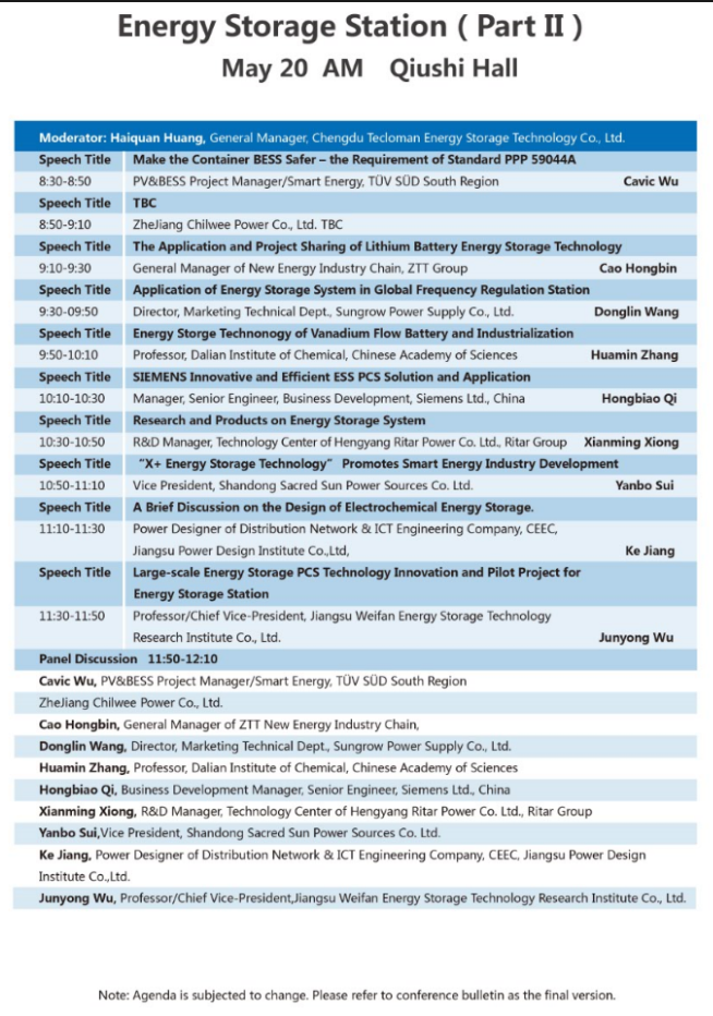 以下為儲能電站專場(三場)大會議程表。
