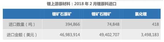 中國儲能網(wǎng)訊:2018 年 2 月中國鋰礦石原礦進(jìn)口約 39.5 萬噸,環(huán)比增長 28%;鋰礦石精礦進(jìn)口 7.5 萬 噸,環(huán)比下跌 26.5%;氯化鋰進(jìn)口 418 噸,環(huán)比增長 55%。