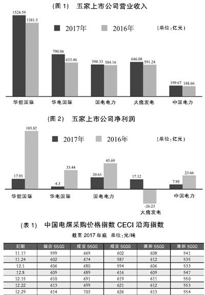 2017年,尤其是年底供暖季期間的高煤價(jià),對(duì)五大上市公司經(jīng)營(yíng)造成巨大沖擊。各分析機(jī)構(gòu)紛紛寄望于煤電聯(lián)動(dòng)與煤價(jià)下跌,能拉動(dòng)各公司火電業(yè)績(jī)的復(fù)蘇。