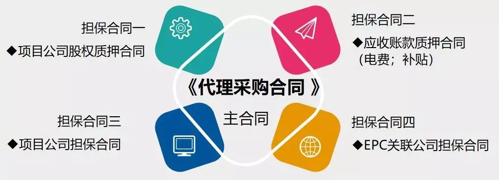 據(jù)徐劍楠介紹,在這一過程中的主合同是代理采購合同,中間會有幾道擔保,如果EPC的資信不夠,會要求母公司來做一個擔保。至于項目公司本身的股權(quán)質(zhì)押、應(yīng)收賬款質(zhì)押和項目公司的擔保,看起來很復雜,實際做起來并不復雜。