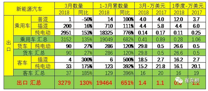 2、18年1-3月份新能源車出口情況,