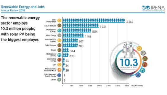 IRENA 在發(fā)布的報(bào)告中稱,2017年,可再生能源行業(yè)在全球創(chuàng)造了超過(guò)50萬(wàn)個(gè)新的就業(yè)機(jī)會(huì)。中國(guó)、巴西、美國(guó)、印度、德國(guó)和日本仍然是全球最大的可再生能源雇主,占比超過(guò)全球工作崗位的70%。
