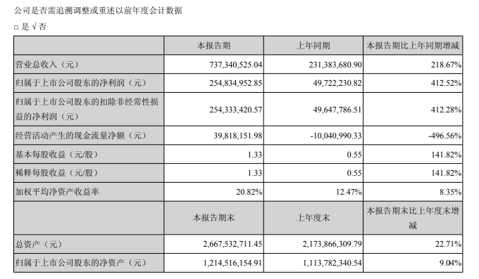 4月26日,寒銳鈷業(yè)發(fā)布了2018年第一季度業(yè)績報告。報告顯示,寒銳鈷業(yè)一季度實現(xiàn)營業(yè)收入7.37億元,相比去年同期的2.31億元,同比增長218.67%;實現(xiàn)歸屬于母公司所有者的凈利潤2.54億元,相比去年同期的0.5億同比增加412.52%;實現(xiàn)扣除非經(jīng)常性損益后歸屬于母公司所有者的凈利潤2.54億元,同比增加412.28%,繼續(xù)保持寒銳鈷業(yè)上市以來高速增長勁頭。