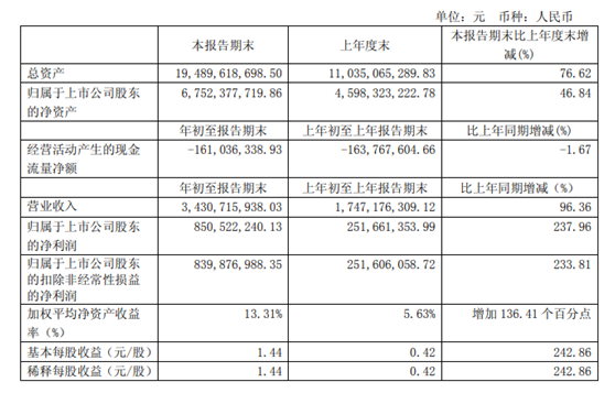 和前面幾家企業(yè)一樣,華友鈷業(yè)2018年第一季度業(yè)績保持高速增長。報告顯示,華友鈷業(yè)一季度實現(xiàn)營業(yè)收入34.31億元,相比去年同期的17.47億元,同比增長96.36%;實現(xiàn)歸屬于母公司所有者的凈利潤8.50億元,相比去年同期的2.51億同比增加237.96%;實現(xiàn)扣除非經(jīng)常性損益后歸屬于母公司所有者的凈利潤8.39億元,同比增加233.81%,繼續(xù)保持華友鈷業(yè)上市以來高速增長勁頭。
