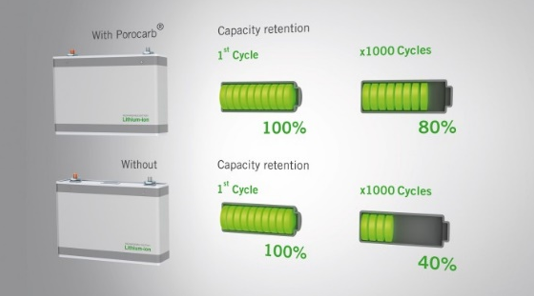 基于這種認(rèn)識,賀利氏蓄電池技術(shù)公司(以下簡稱“賀利氏”)發(fā)明了一種鋰離子電池用Porocarb系列的合成碳功能性添加劑。據(jù)了解,Porocarb合成碳功能性添加劑具有精心設(shè)計且結(jié)構(gòu)清楚的內(nèi)部孔隙度,它不但能確保電極內(nèi)的電子連接性,更可以提高離子傳導(dǎo)率。