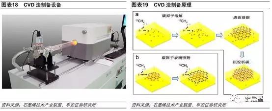 在制備技術(shù)層面,氧化還原法與物理剝離法常被用作制備石墨烯粉體,而化學(xué)氣相沉積法與外延生長法常被用作制備石墨烯薄膜。