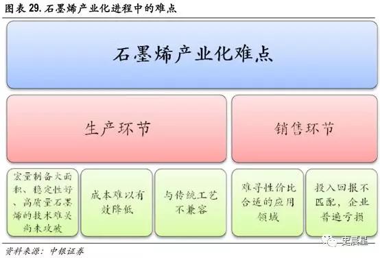 石墨烯產(chǎn)業(yè)化難點(diǎn)主要體現(xiàn)在市場(chǎng)需求不明確、研發(fā)投入大、制備成本高。