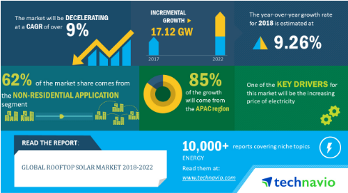 中國儲(chǔ)能網(wǎng)訊:市場(chǎng)研究分析機(jī)構(gòu)Technavio預(yù)測(cè),全球屋頂太陽能市場(chǎng)在2018-2022年的復(fù)合年增長率將超過9%。