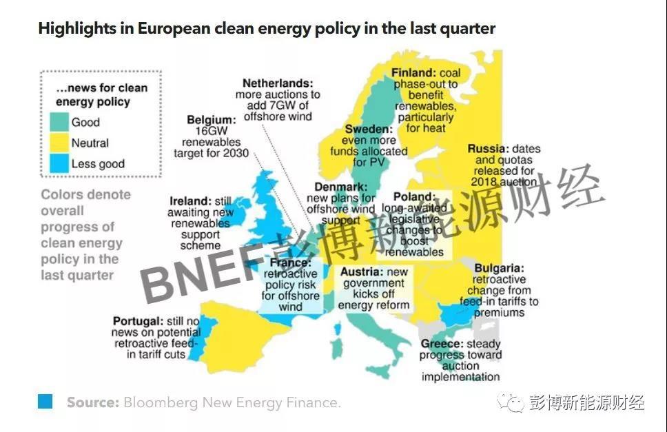 中國儲能網(wǎng)訊:一些歐洲國家已經(jīng)迎來(或即將迎來)可再生能源發(fā)展的新曙光。而相比之下,另一些歐洲國家則有可能采取追溯性補(bǔ)貼削減,令行業(yè)重回低谷。光明的一面是,波蘭與希臘在實(shí)施更多可再生能源項(xiàng)目拍賣上邁出了重大的一步,我們預(yù)測在希臘第三季度的首輪拍賣和波蘭第四季度的首輪拍賣中,競爭將變得激烈。此外,意大利也正在計(jì)劃出臺新制度以支持該國6.3GW可再生能源項(xiàng)目的建設(shè)。在西班牙,兩個2017年陸上發(fā)電項(xiàng)目拍賣中的獲勝者也在項(xiàng)目建設(shè)進(jìn)程中更進(jìn)一步,盡管其中我們?nèi)匀活A(yù)測一些項(xiàng)目將無法按時完工。