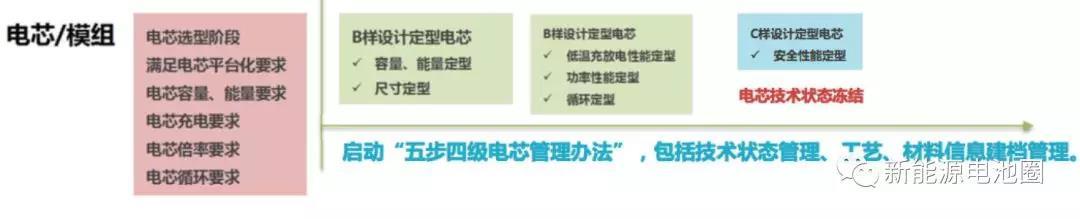 五步四級電芯管理辦法,包括技術狀態(tài)管理、工藝、材料信息建檔管理。