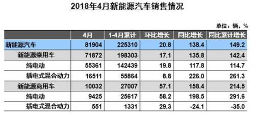 中國(guó)儲(chǔ)能網(wǎng)訊:本周,中汽協(xié)與中國(guó)充電聯(lián)盟相繼發(fā)布新能源汽車市場(chǎng)數(shù)據(jù)。根據(jù)中汽協(xié)發(fā)布2018年4月份汽車產(chǎn)銷數(shù)據(jù)顯示,今年4月新能源汽車產(chǎn)銷量分別為8.1萬輛和8.2萬輛,同比增長(zhǎng)分別為117.7%和138.4%;1-4月累計(jì)銷售新能源汽車22.5萬輛,同比增長(zhǎng)149.2%。