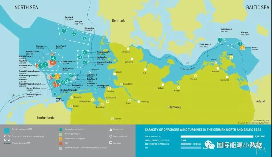 中國儲(chǔ)能網(wǎng)訊:2017年德國新吊裝了222臺(tái)海上風(fēng)力發(fā)電機(jī),新增裝機(jī)容量1.25吉瓦,比上一年增長30%,占全球海上風(fēng)電增量的40%。到2017年末,德國海上風(fēng)機(jī)共有1169座(997座在北海,172座在波羅的海),總裝機(jī)容量5.38吉瓦,2017年發(fā)電量179億千瓦時(shí),占全國發(fā)電量的2.7%,就業(yè)崗位約20000人。按照德國政府的目標(biāo),2020年德國海上風(fēng)電裝機(jī)將達(dá)到7.7吉瓦,2030年達(dá)到15吉瓦。2017年海上風(fēng)機(jī)的平均單機(jī)容量為6兆瓦,預(yù)計(jì)2025年增至13-15兆瓦。