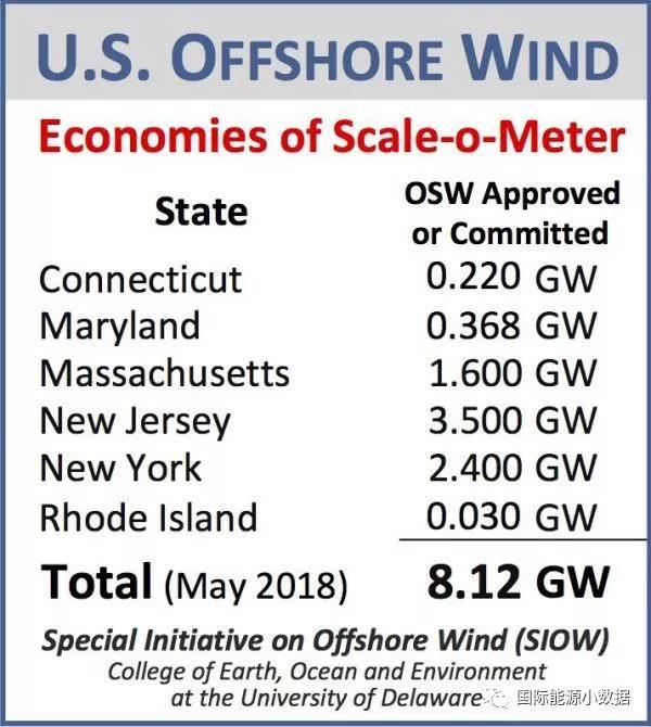 目前美國已經(jīng)有6個州共8.12吉瓦的海上風(fēng)電項目得到批準(zhǔn)或承諾,其中新澤西州3.5吉瓦、紐約州2.4吉瓦、麻薩諸塞州1.6吉瓦。美國能源部預(yù)計2050年美國海上風(fēng)電裝機可達(dá)86吉瓦,相關(guān)就業(yè)人數(shù)可達(dá)16萬人。