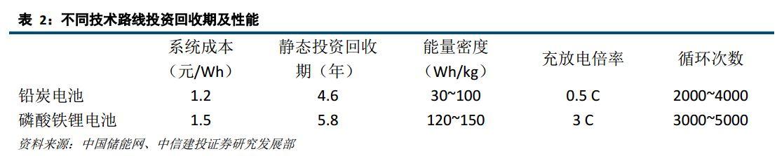 鋰離子電池快速發(fā)展所帶來的成本優(yōu)勢(shì)將助其逐漸擴(kuò)大市場(chǎng)。 從表 2 可以看出,利用鉛炭電池套利靜態(tài)投資回收期不足 5 年,已經(jīng)具有商業(yè)化可行性。由于鋰電池成本相對(duì)較高,現(xiàn)階段鋰電池的投資回收期要長(zhǎng)于鉛蓄電池。根據(jù) CNESA 的統(tǒng)計(jì), 2017 年用戶側(cè)領(lǐng)域新增電化學(xué)儲(chǔ)能項(xiàng)目中, 鉛蓄電池所占比重最大,為 77%,剩余為鋰電池,也說明出于成本考慮,現(xiàn)在企業(yè)更傾向于安裝經(jīng)濟(jì)效益更佳的鉛蓄電池。但隨著鋰離子電池技術(shù)迅速發(fā)展,其成本自 2010 年以來已經(jīng)下降近 80%。根據(jù)國(guó)家發(fā)布的《節(jié)能與新能源汽車技術(shù)路線圖》, 到 2020年鋰電系統(tǒng)成本將降至 1 元/Wh 以下,屆時(shí)投資回收期有望縮短至 3.9 年。 且隨著退役動(dòng)力電池進(jìn)入梯次利用領(lǐng)域,儲(chǔ)能成本將會(huì)進(jìn)一步下降。