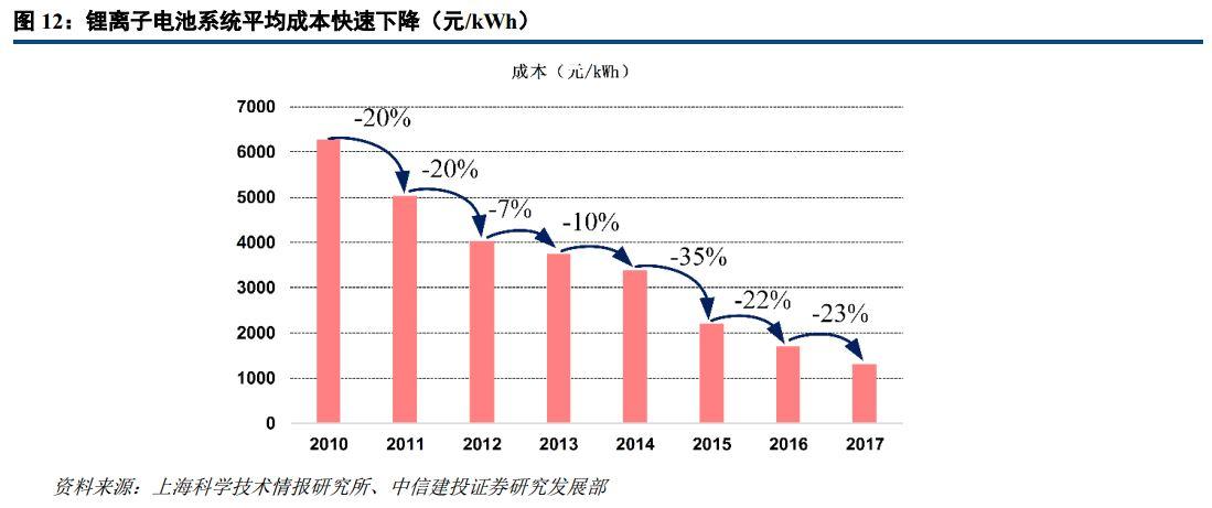 動(dòng)力電池產(chǎn)能擴(kuò)張助力儲(chǔ)能產(chǎn)業(yè)發(fā)展。 受到國(guó)家政策對(duì)新能源汽車的大力扶持,國(guó)內(nèi)動(dòng)力電池產(chǎn)能快速擴(kuò)張, 但電池產(chǎn)能擴(kuò)張速度與新能源汽車需求擴(kuò)張速度不匹配, 也造成了階段性的產(chǎn)能過剩,比如,截止 2017 年底國(guó)內(nèi)動(dòng)力電產(chǎn)能已經(jīng)達(dá)到 120GWh,而 2017 年動(dòng)力電池裝機(jī)量只有 36GWh。隨著動(dòng)力電池成本的不斷下降,其在儲(chǔ)能領(lǐng)域的應(yīng)用場(chǎng)景正不斷被開發(fā)出來,未來在可再生能源并網(wǎng)、用戶側(cè)儲(chǔ)能以及電力輔助服務(wù)領(lǐng)域應(yīng)用前景非常廣闊,儲(chǔ)能也有望成為電池在新能源汽車領(lǐng)域之外應(yīng)用的下一個(gè)風(fēng)口。