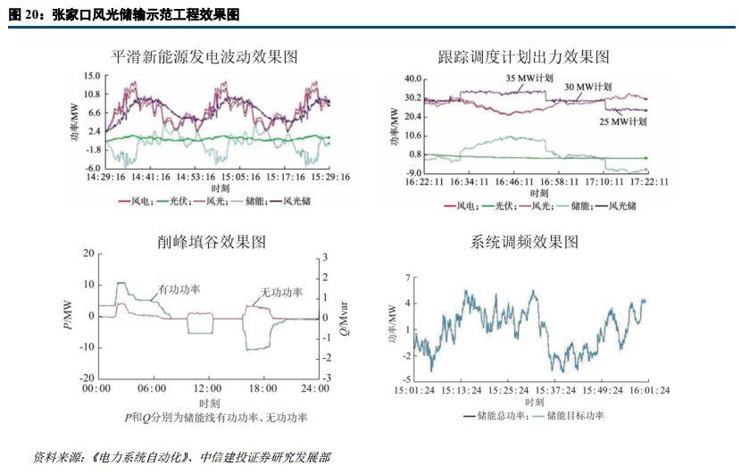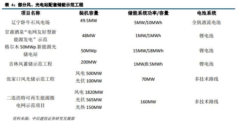 目前國(guó)內(nèi)已經(jīng)有大量風(fēng)、光儲(chǔ)電站示范項(xiàng)目投入使用。 以張家口風(fēng)光儲(chǔ)示范工程為例,通過風(fēng)、光、儲(chǔ)的6 種組合發(fā)電方式與平滑處理、跟蹤計(jì)劃、系統(tǒng)調(diào)頻、削峰填谷 4 種功能的結(jié)合,取得了明顯效果,為大規(guī)模儲(chǔ)能系統(tǒng)在新能源并網(wǎng)領(lǐng)域的深入推廣提供了良好借鑒。截止 2017 年底國(guó)內(nèi)集中式光伏電站裝機(jī)量約 101GW,風(fēng)電裝機(jī)量約 164GW,假設(shè)配套 10%儲(chǔ)能裝置,將帶來 26.5GW 儲(chǔ)能裝機(jī)量需求量;并且隨著新能源裝機(jī)量的不斷提升,市場(chǎng)空間將持續(xù)增大。
