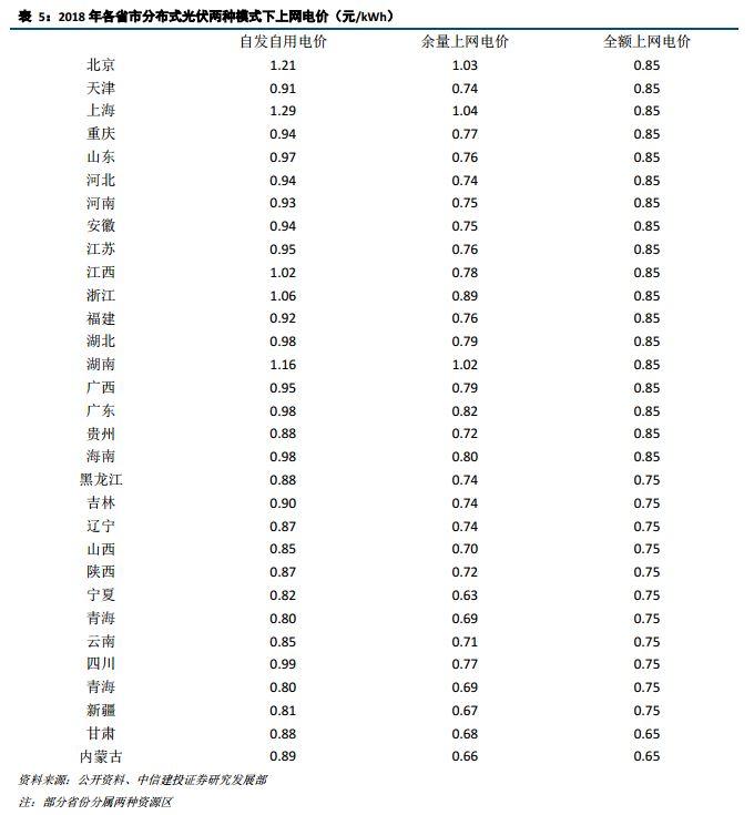 全額上網(wǎng)電價(jià)=光伏標(biāo)桿電價(jià)(分一、二、三類資源區(qū))。