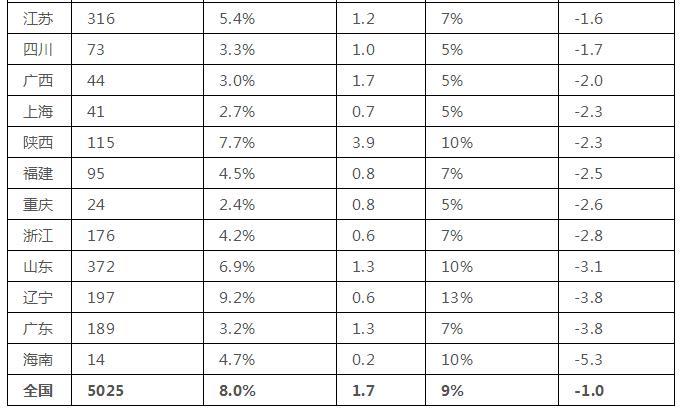 表1 2017年各?。▍^(qū)、市)可再生能源電力消納情況