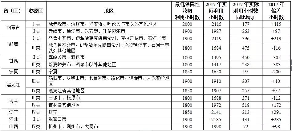 新疆Ⅲ類資源區(qū)、甘肅、寧夏、吉林Ⅲ類資源區(qū)未達到風電最低保障收購年利用小時數(shù)要求。