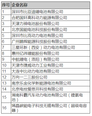 為促使優(yōu)勢企業(yè)更優(yōu)更強、帶動產(chǎn)業(yè)升級,促進(jìn)提高動力電池產(chǎn)業(yè)發(fā)展的整體質(zhì)量和水平,按照《汽車動力蓄電池和氫燃料電池行業(yè)白名單暫行管理辦法》(《管理辦法》)的要求和推優(yōu)原則,中國汽車工業(yè)協(xié)會、中國汽車動力電池產(chǎn)業(yè)創(chuàng)新聯(lián)盟近期組織專家對材料初審合格的企業(yè)進(jìn)行了專家評審,根據(jù)專家評審意見,現(xiàn)將汽車動力蓄電池和氫燃料電池行業(yè)白名單(第一批)予以公示。如有異議,請于2018年5月28日前以電子郵件形式反饋至中國汽車動力電池產(chǎn)業(yè)創(chuàng)新聯(lián)盟秘書處。
