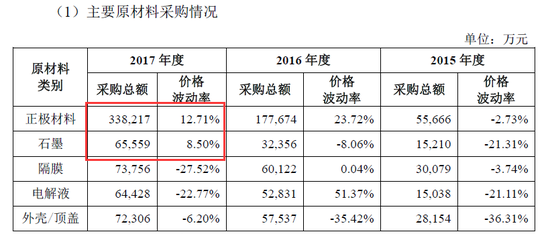 同時,再從其成本供給端看,2015年至2017年,占公司主營業(yè)務(wù)成本比例最高的為直接材料,占比分別為78.60%、81.21%和83.75%,因此原材料價格波動是影響公司成本的主要因素。在此期間,正極材料平均采購價格逐年升高,主要原因為鈷、鋰等金屬價格的上漲。其鋰電池材料主要包括三元前驅(qū)體等,報告期內(nèi)銷售價格有所波動,均價從2015年的6.35萬元/噸降至2016年的5.24萬元/噸,又升至2017年的8.15萬元/噸,2016年售價較2015年下降主要是因為主要原材料之一金屬鈷的價格在2015 年和2016年整體上趨于下降,在2016年下半年以后才開始回升。2017年,鈷價延續(xù)上漲趨勢。2016年石墨平均采購價格有所降低,但是2017年由于石墨市場供需關(guān)系變化,出現(xiàn)供應(yīng)緊張的現(xiàn)象,其石墨采購價格也出現(xiàn)上漲。原材料款的成本上升使得其毛利空間又進(jìn)一步縮小。
