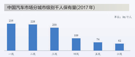目前一線城市和部分二線城市已經(jīng)開始限購,每年新增車輛牌照數(shù)量基本都控制在了5輛/千人以下,即使牌照數(shù)量不縮減,未來10年一線城市千人保有量都無法超過300。因此,可以預(yù)見,新購車群體將主要出現(xiàn)在四線及以下城市,一二三線城市市場將進(jìn)入換購型市場。