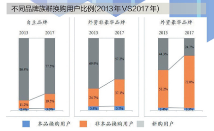 主要外資品牌換購比例超過新購用戶自主品牌仍以新購用戶為主