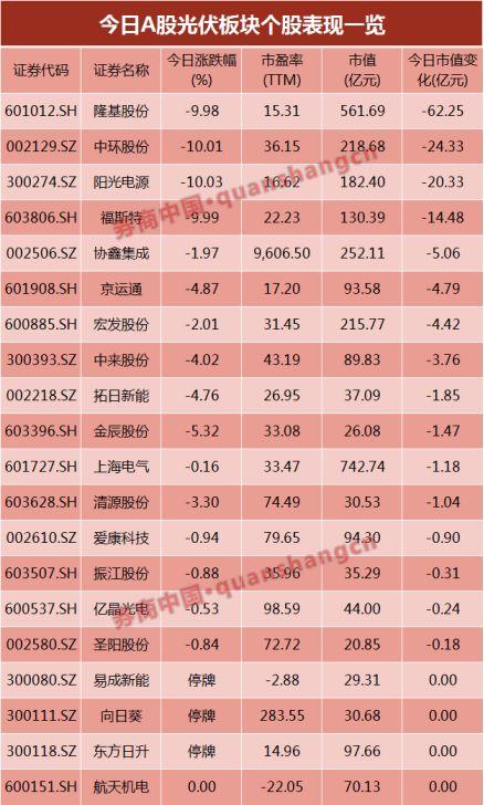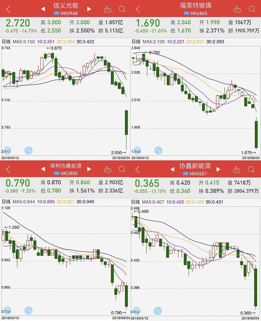 受光伏新政影響,A股和港股光伏概念股均出現(xiàn)大幅下跌。
