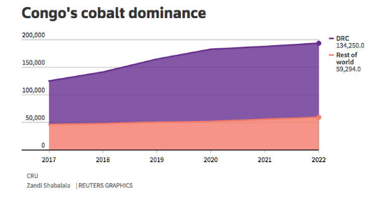 由于市場擔心電池原材料的供應(yīng)短缺以及對電動汽車行業(yè)需求旺盛的預(yù)期,鈷價自2016年后一直居高不下。鈷作為一種合金在飛機、渦輪機等領(lǐng)域的傳統(tǒng)應(yīng)用也在不斷的增長。鈷供應(yīng)短缺的風險主要來源于剛果民主共和國,該國鈷產(chǎn)量占全世界產(chǎn)量的三分之二。隨著中國不斷的投資開發(fā)新的鈷礦,中國鈷產(chǎn)量的市場份額將在未來五年內(nèi)持續(xù)增加。而中部非洲國家的鈷產(chǎn)量也在飆升,因為瑞士大宗商品公司Glencore翻新了公司在這一地區(qū)的業(yè)務(wù)。