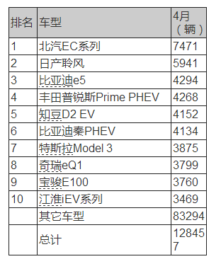 從車型分布看,4月純電動汽車的銷量占比上升1%,達到61%,預計今年的比例將不斷提高,可能超過去年65%的水平。