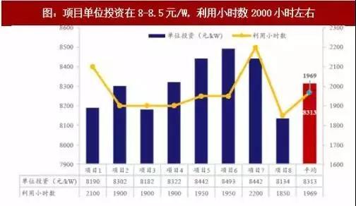 圖:項(xiàng)目單位投資在8-8.5元/W,利用小時(shí)數(shù)2000小時(shí)左右