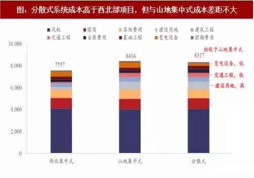 圖:分散式系統(tǒng)成本高于西北部項(xiàng)目,但與山地集中式成本差距不大