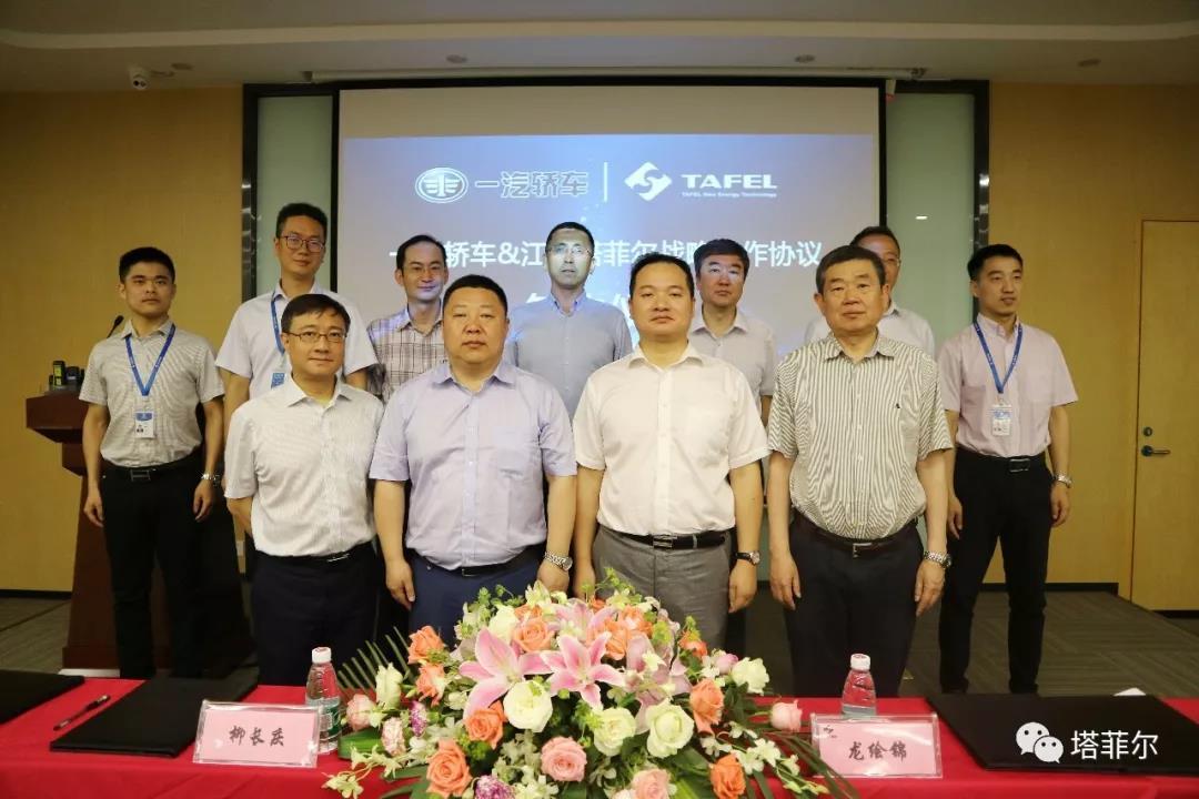 中國儲(chǔ)能網(wǎng)訊:2018年6月8日,一汽轎車股份有限公司(以下簡(jiǎn)稱“一汽轎車”)與江蘇塔菲爾新能源科技股份有限公司(以下簡(jiǎn)稱“塔菲爾”)在南京舉行戰(zhàn)略合作簽約儀式。中國第一汽車股份有限公司總經(jīng)理助理、奔騰事業(yè)部本部部長(zhǎng)、一汽轎車總經(jīng)理柳長(zhǎng)慶先生與塔菲爾新能源科技董事長(zhǎng)兼總裁龍繪錦先生出席并代表公司簽署了戰(zhàn)略合作協(xié)議。