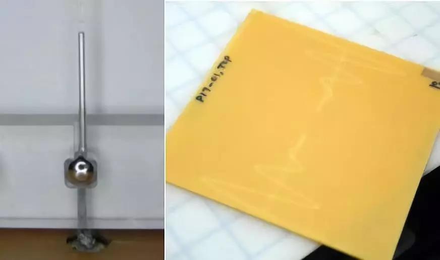 鎵銦合金(左側(cè))及由該合金支撐的液態(tài)金屬液滴陣列(美國北卡羅來納州州立大學(xué)圖片)