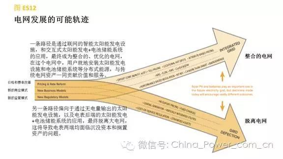 電力系統(tǒng)正處于發(fā)展道路上的一個交叉路口。一條路徑是有利于無電量輸出的太陽能發(fā)電設(shè)施以及太陽能發(fā)電+電池儲能系統(tǒng)的定價結(jié)構(gòu)、商業(yè)模式和監(jiān)管環(huán)境。當(dāng)經(jīng)濟(jì)條件和其它條件達(dá)到臨界點(diǎn)時,這一軌跡的結(jié)果將會是大量用戶脫離大電網(wǎng)。與此同時,隨著擱置電網(wǎng)資產(chǎn)服務(wù)的負(fù)荷將越來越少,電網(wǎng)供應(yīng)電價將面臨螺旋式上升,這會使得太陽能+儲能系統(tǒng)對用戶更具吸引力,從而導(dǎo)致剩余的聯(lián)網(wǎng)用戶的電價水平不可避免的進(jìn)一步升高,形成惡性循環(huán)。這些聯(lián)網(wǎng)用戶包括低收入和固定收入的用戶,他們將承擔(dān)因零售電力定價上漲而帶來的比例失調(diào)的負(fù)擔(dān)。在這一情景下,電網(wǎng)和用戶側(cè)資源都面臨過度建造但利用程度過低的問題,使得電表兩端的資金過剩。另一條路徑則會建立相應(yīng)的定價結(jié)構(gòu)、商業(yè)模式和監(jiān)管環(huán)境,使得太陽能發(fā)電設(shè)施和電池儲能系統(tǒng)等分布式能源,(及其內(nèi)在收益和成本)都被恰當(dāng)?shù)匾暈檎虾蟮碾娋W(wǎng)的有機(jī)組成部分。太陽能發(fā)電設(shè)施和電池儲能系統(tǒng)能潛在地降低整個系統(tǒng)的成本,同時對未來建立可靠的、彈性的、支付得起的低碳電網(wǎng)做出貢獻(xiàn),在這個電網(wǎng)系統(tǒng)里,用戶有權(quán)選擇。在這一情景下,電網(wǎng)和用戶側(cè)資源作為整合的電網(wǎng)的有機(jī)組成部分相輔相成,資金和實(shí)體資產(chǎn)的運(yùn)用效率更高。