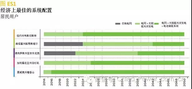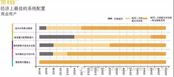 我們的分析有幾項(xiàng)重大發(fā)現(xiàn):太陽能發(fā)電+電池儲能系統(tǒng)能快速地實(shí)現(xiàn)成本效益。從用戶的角度看,經(jīng)濟(jì)性最優(yōu)的系統(tǒng)配置將隨著時間推移而產(chǎn)生變化,短期來看是僅依賴電網(wǎng)的模式,逐漸會發(fā)展成為電網(wǎng)+太陽能發(fā)電的模式,長期來看最優(yōu)的系統(tǒng)將是電網(wǎng)+太陽能發(fā)電+電池儲能系統(tǒng)模式。與我們在《脫離大電網(wǎng)的經(jīng)濟(jì)效益》報告中利用模型分析的無電網(wǎng)太陽能發(fā)電+電池儲能系統(tǒng)實(shí)現(xiàn)經(jīng)濟(jì)性平價的日期相比,本報告中的聯(lián)網(wǎng)系統(tǒng)實(shí)現(xiàn)經(jīng)濟(jì)效益的時間會提前很多,而且電力公司將在其主要資產(chǎn)的經(jīng)濟(jì)年限及成本回收期之內(nèi),損失大量用電負(fù)荷。僅依賴太陽能發(fā)電設(shè)施的系統(tǒng)容量較小,今天已經(jīng)在我們分析的五個地區(qū)中的三個地區(qū)實(shí)現(xiàn)了經(jīng)濟(jì)效益,十年之內(nèi)會在所有地區(qū)實(shí)現(xiàn)經(jīng)濟(jì)效益。新用戶將發(fā)現(xiàn),太陽能發(fā)電+電池儲能系統(tǒng)的配置在未來10至15年內(nèi)會在上述五個地區(qū)中的三個地區(qū)實(shí)現(xiàn)經(jīng)濟(jì)效益。