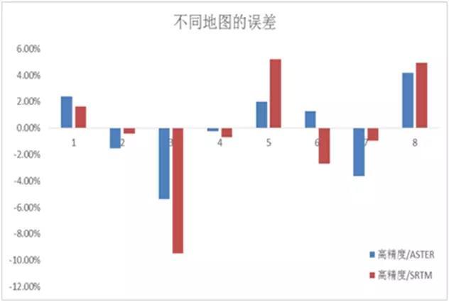 上圖表明, ASTER和SRTM地圖在山地項(xiàng)目的表現(xiàn)誤差較大,最大發(fā)電量誤差接近10%,只有在某些地形相對(duì)平坦的項(xiàng)目,發(fā)電量誤差水平才可能小于2%。