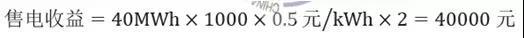 按照《通知》的規(guī)定,建設(shè)在發(fā)電端的儲(chǔ)能設(shè)施,售電按電廠上網(wǎng)電價(jià)計(jì)算,因此儲(chǔ)能高峰放電按風(fēng)電上網(wǎng)電價(jià)0.5元/kWh計(jì)算。假設(shè)所存電量高峰期都能出售,且充放電效率為100%,不考慮充放電深度,全部放光,每天的售電收益為: