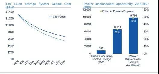 從數(shù)據(jù)上看,當(dāng)前在某些領(lǐng)域鋰離子電池和天然氣峰值電廠之間是可以競(jìng)爭(zhēng)的,未來(lái)幾年這種競(jìng)爭(zhēng)在美國(guó)全國(guó)范圍內(nèi)會(huì)越來(lái)越明顯,隨著成本“瓶頸”的突破,電池在美國(guó)將更具優(yōu)勢(shì)。