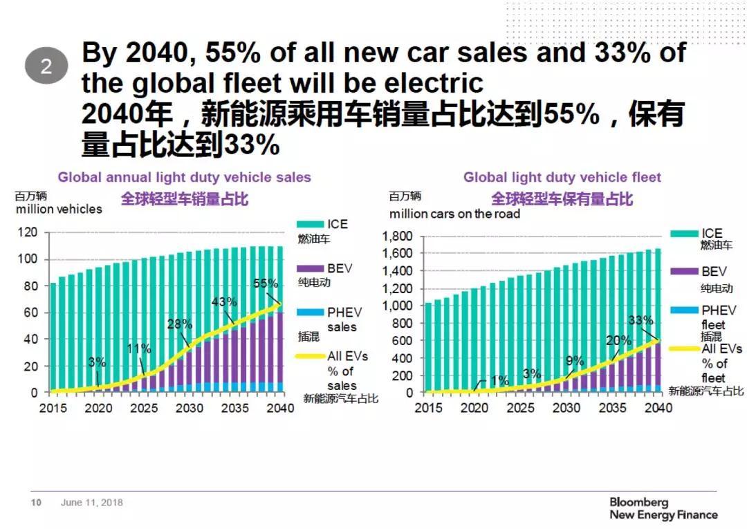 “過去一年,車企推出了越來越多的新能源汽車產(chǎn)品,政府頒布了控制污染的新政策,這都促使我們對新能源汽車未來的發(fā)展更加樂觀?!?span>McKerracher說,新能源乘用車2040年的銷量占比將達到55%,保有量占比將達到33%。