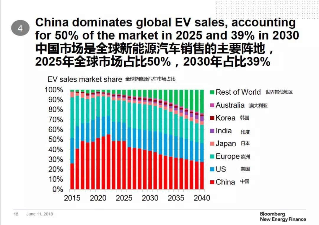 中國將引領(lǐng)這場變革,2025年在全球新能源汽車市場中的比例將接近50%,2030年將達到39%。
