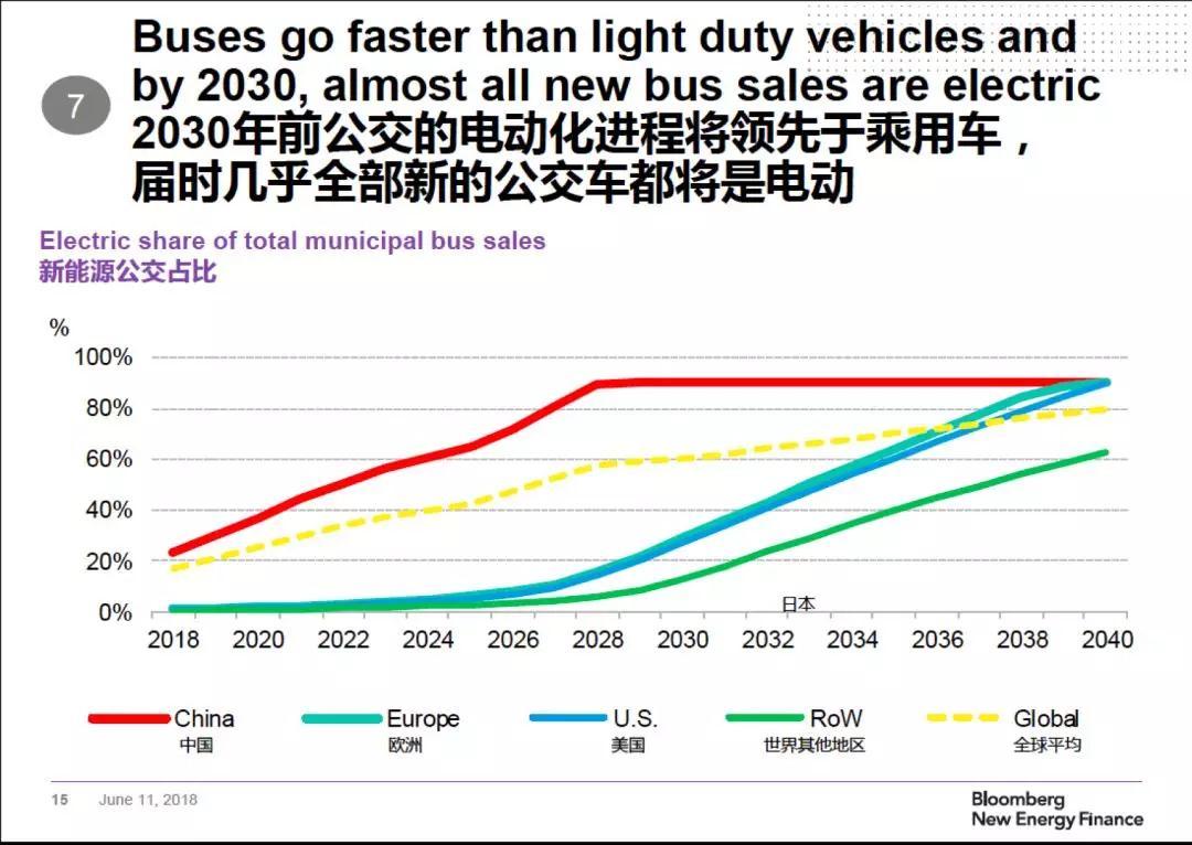 “中國在新能源公交車市場的領(lǐng)先優(yōu)勢非常明顯,去年占據(jù)了全球市場的99%。其他市場也會跟上,到2040年我們預(yù)計80%的全球城市公交都將是新能源汽車?!?/span>McKerracher說。