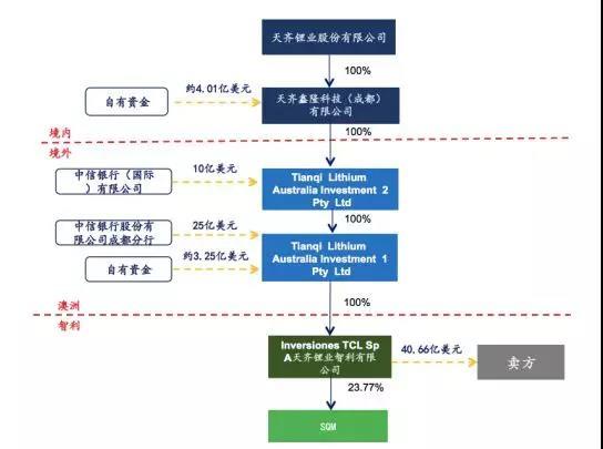 從上圖中可以看到,扣除并購銀團貸款和境外籌集資金合計35億美元后的差額部分7.26億美元由天齊鋰業(yè)自有資金解決。