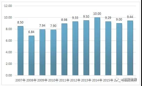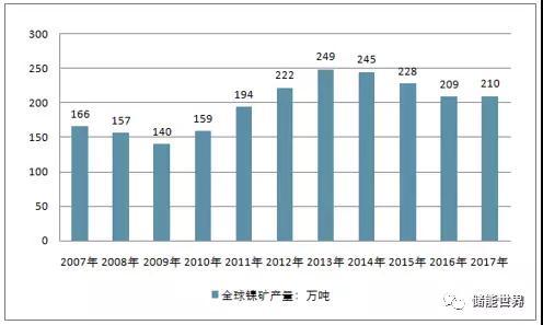 2007-2017年全球鎳礦產(chǎn)量走勢